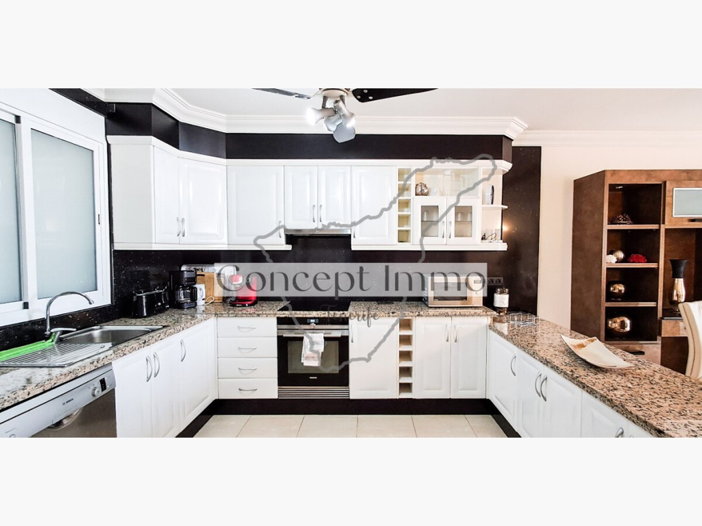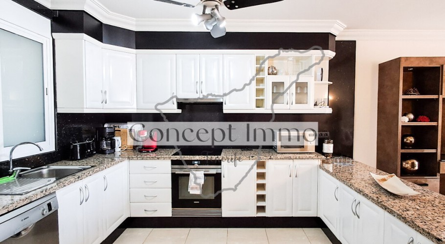 This solid propertyis quietly located in Roque del Conde, offering spectacular views over Costa Adeje and the blue Atlantic. This beautiful, well-maintained neighborhood is located on the south coast of Tenerife and belongs to the municipality of Adeje, approx. 7 km from Playa de Las Americas. The impressive rocky coastline and the deep blue Atlantic, as well as the view of La Gomera, are particularly impressive. Exclusive golf courses are just a few minutes' drive away.